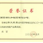 清火膠囊2019年度江西省優(yōu)秀新產(chǎn)品證書(shū)